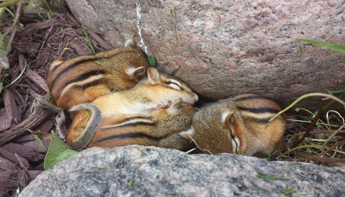 "등산하다가 바위 틈에서 꿀잠자는 다람쥐 가족을 만났어요"